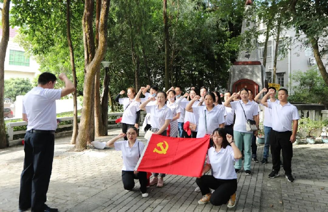 在纪念馆广场,石永久书记还带领全体党员同志面对鲜红的党旗,庄严肃穆地举起右手,重温了入党誓词,铮铮誓言的呐喊声在耳边回响,字字铿锵,句句有力,回味入党初心、重温入党使命,表达对党的崇高信仰和坚定信念。